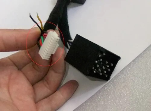 When you find out the CAN-BUS, that’s great news. Then you can check a small white plug from the power cables, this small white plug is used to connect with the CAN-BUS decoder. If your BMW E46 should be used with a short 17 pins connectors power cable, the plug for the CAN-BUS decoder box is as below: