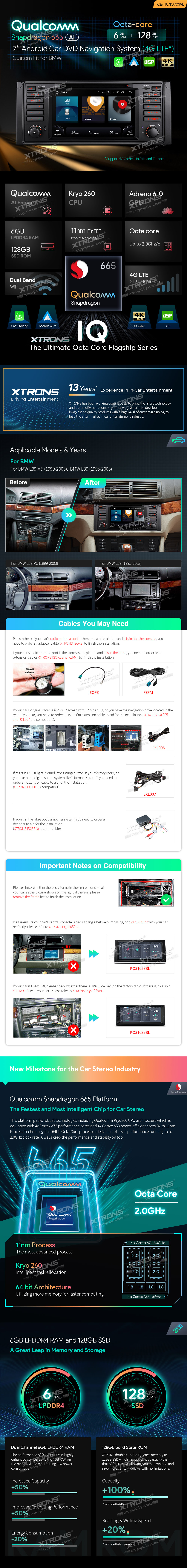 7" Snapdragon 665 Android Octa Core 6GB + 128GB Car Navigation System (4G LTE*) Universal Custom Fit for BMW